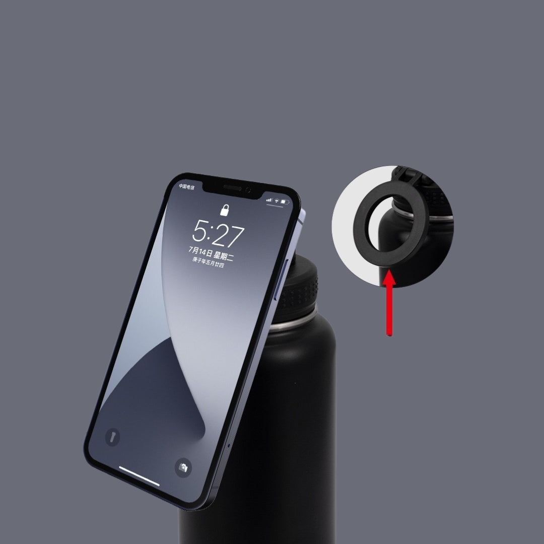 - Magnetische Halterung: Hält deine Flasche sicher an Ort und Stelle, egal ob auf Metalloberflächen oder in der Tasche.